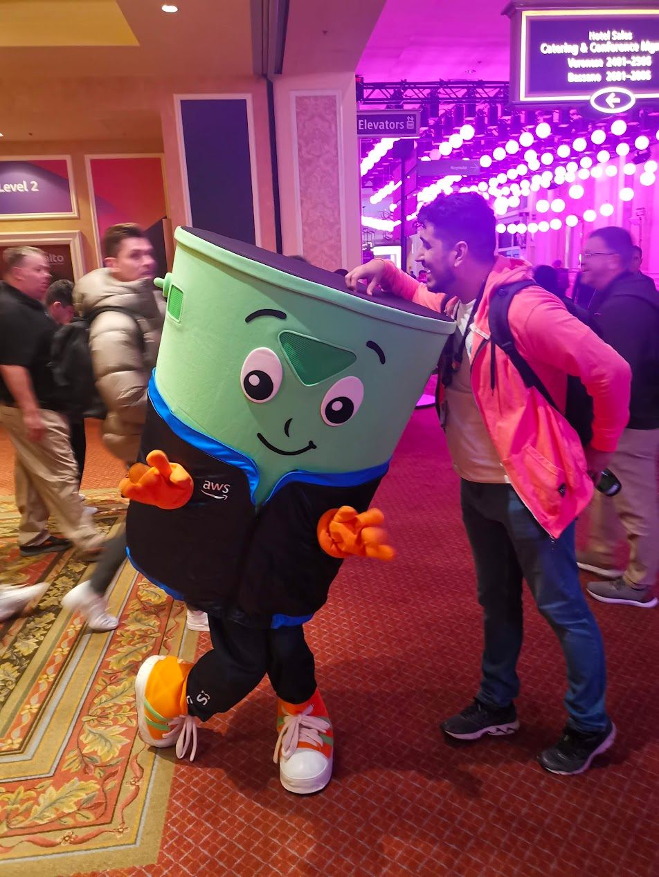 This is the newest storage class to date, announced at re:Invent 2023. Fun fact: There was an S3 bucket walking around re:Invent and you could take pictures with it, but nobody knew what it was about. Then on the 3rd day they announced S3 Express One Zone, and we were all like "Oooohhh, that's what I got a picture with!". Here's my picture: