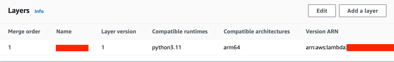 Screenshot of a Lambda Layer in the AWS Lambda console