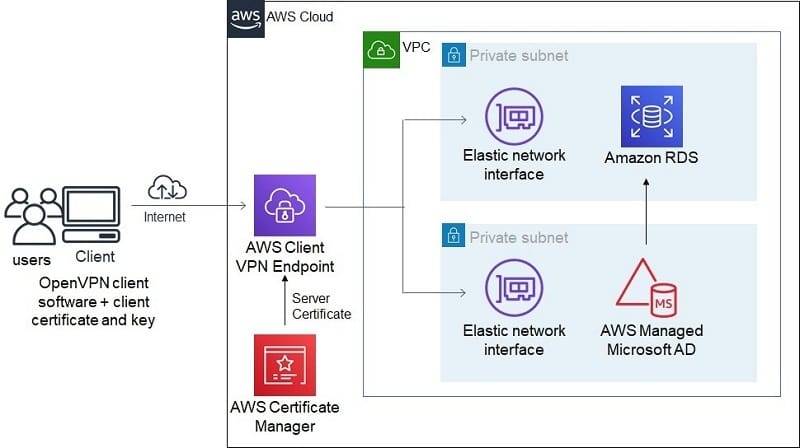 Use More Than 1 Network Association: The Client VPN endpoint itself is highly available, but network associations are done against a specific subnet, which will reside in only one Availability Zone. Using more than one network association, each with a subnet in a different Availability Zone, eliminates this single point of failure and makes the connection highly available. Note that this only matters if the database itself is highly available.